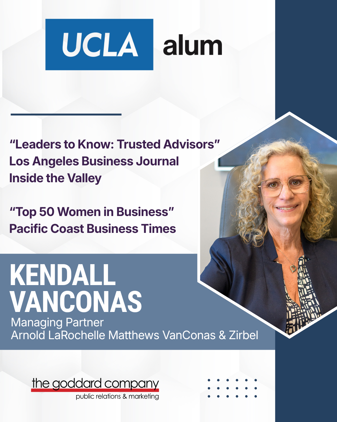 Kendall VanConas '88, managing partner, Arnold LaRochelle Matthews VanConas & Zirbel, named "Top 50 Women in Business" by Pacific Coast Business Times 2026 and "Leaders to Know: Trusted Advisors," Los Angeles Business Journal: Inside the Valley 2026.