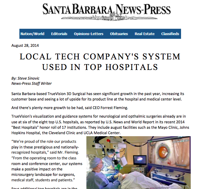 When TrueVision 3D Sugical's system was used in top hospitals, everyone wanted the scoop. Here are the publication outlets we used to spread the news: